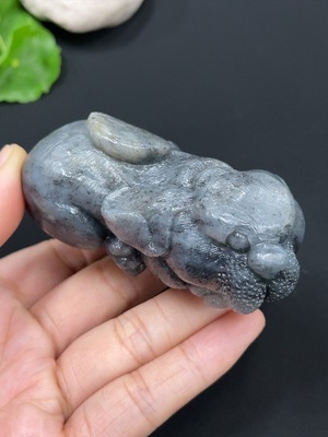 H26999887 Hetian Jade Handheld Carving "Prosperity" with Undetermined Skin Color Origin and Containing Other Mineral Components, Total Weight Approx. 177.3g