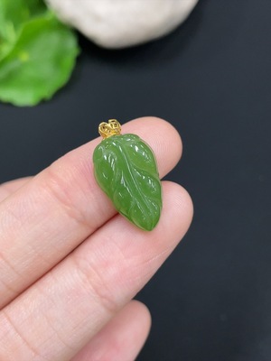 H29412470 Hetian Jade Pendant Leaf with 18K Gold Clasp Total Weight Approx. 1.5g
