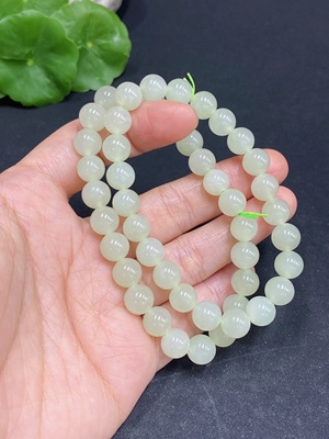 H33930654 Hetian Jade Bead Necklace, Approx. 7.7 mm, Non-Gold, Total Weight Approx. 45.1g