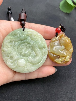 H15588171 Hetian Jade Pendant Dragon Plaque + Rat Treasure