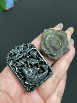 H32780561 Hetian Jade Pendant Lotus and Fish (Symbolizing Abundance Year After Year) Blooming Flowers (Symbolizing Wealth and Prosperity) Total Weight: Approx. 43.1g