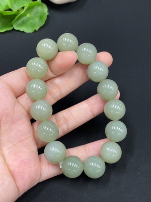 H27129296 Hetian Jade Bracelet, Approx. 13.7 mm Beads, Total Weight Approx. 62.9g