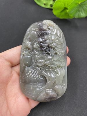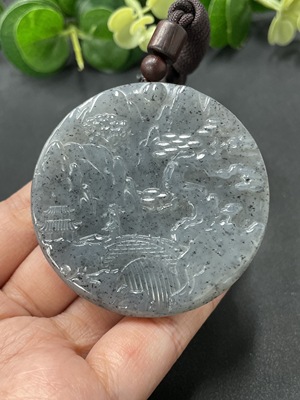 H09162488 Hetian Jade Landscape Pendant, Total Weight 51.4g (including rope weight)