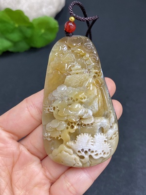 H17914366 Hetian Jade Pendant Landscape Plaque Total Weight Approx. (with rope) 57.4g
