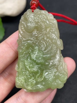 H31582463 Hetian Jade Pendant - Dragon Roaming the World with Non-Hetian Jade Beads - Total Weight (including cord): 28g