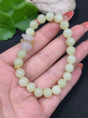 H34017386 Hetian Jade Bracelet, approx. 8mm beads, total weight approx. 18.4g