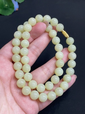 H34010739 Hetian Jade Bead Necklace, Approx. 5.9mm, Total Weight Approx. 35.1g