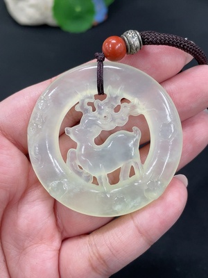 H39607148 Xiuyu (Serpentine Jade) Pendant Sheep Plaque