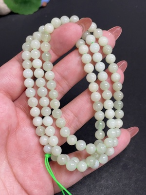 H39566202 Hetian Jade Bead Necklace, Approx. 5.7mm, Total Weight Approx. 33.1g