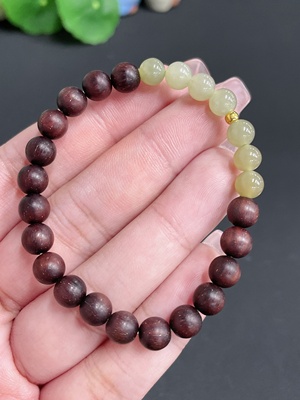 H19086009 Hetian Jade Bracelet, Approx. 5.8mm Beads, 99% Gold Beads, Non-Hetian Matching Beads