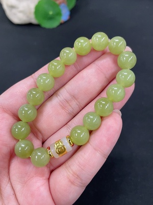 H39607139 Hetian Jade Bracelet, approx. 9.5mm, marked red non-gold, rest 99% gold content, total weight approx. 25.5g