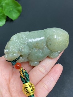 H24725803 Hetian Jade Handheld Piece - Auspicious Beast, Total Weight (Including Rope) Approx. 99.7g, Undetermined Skin Color Origin
