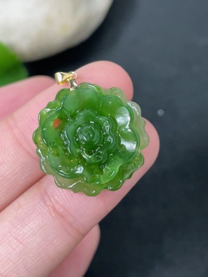 H37437928 Hetian Jade Jasper Pendant "Flower Blooms Bring Riches" 18K Gold Total Weight Approx. 3.1g