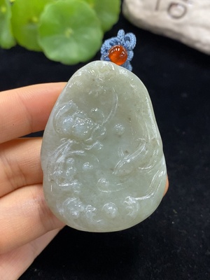 H10078900 Hetian Jade Pendant - Lotus and Fish, Total Weight 35.7g