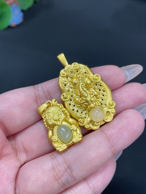 H39561918 Hetian Jade Inlaid Pendant Total Weight Approx.19g Non-Gold