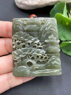 H17952177 Hetian Jade Pendant, Landscape Plaque, Total Weight Approx. (Including Cord) 64g