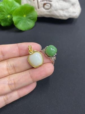 H1038672 Hetian Jade Inlaid Ring & Pendant Set (Total Weight: 9.74g)
