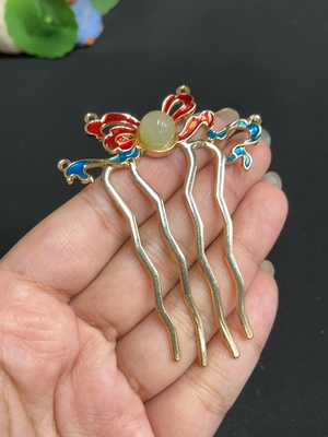 H36289367 Hetian Jade Inlaid Hairpin, approx. 9.3mm, total weight approx. 8.7g, non-gold