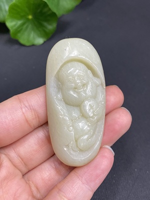 H0715105 Hetian Jade Buddha Pendant Total Weight 49.4 with Cracks