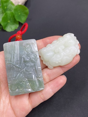 H23659039 Hetian Jade Pendant: National Beauty and Heavenly Fragrance + Auspicious Beast