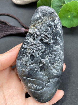 H17846185 Hetian Jade Handheld Ornament - Landscape - Undetermined Skin Color Origin