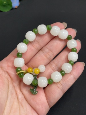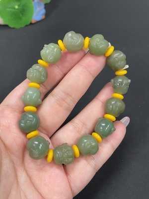 H36268756 Hetian Jade Bracelet, approx. 11mm beads, total weight approx. 33.8g, contains other mineral components, accessory beads not Hetian Jade