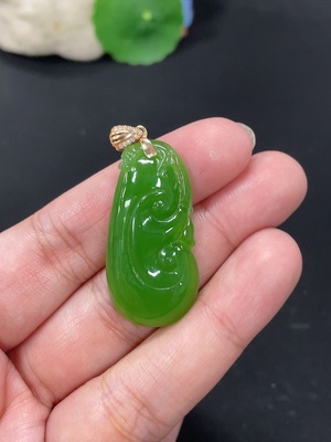 H37428415 Hetian Jade Jasper Inlaid Pendant "Ruyi" Total Weight Approx. 7.4g 18k Gold with Diamond Accents