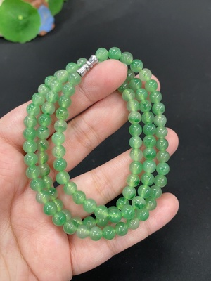 H32705414 Hetian Jade Bead Necklace, Approx. 8mm, Non-Gold, Total Weight Approx. 45.5g