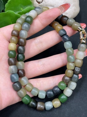 H35102311 Hetian Jade Jasper Bead Necklace Approx. 7.8mm No Hallmark, Clasp Pendant Gold Content 75% Remaining Gold Content 70% Total Weight Approx. 44.8g