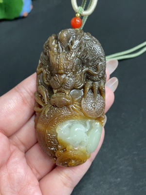 H28274247 Hetian Jade Pendant Dragon Total Weight (Including Rope) Approx. 94.1g
