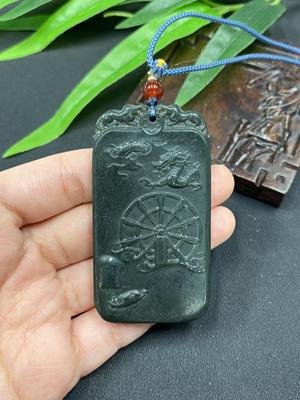 H08545191 Hetian Jade Pendant - Dragon and Crane, Total Weight: 11.6g