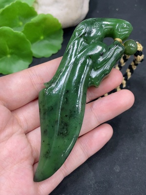 H36296291 Hetian Jade Jasper Handheld Carving - Horse Total Weight (including rope): 84.5g