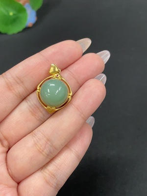 H38529774 Hetian Jade Jasper Inlaid Pendant, 18k Gold, Total Weight Approximately 5.2g