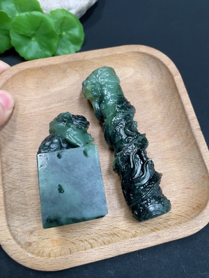 H35169684 Hetian Jade Jasper Handheld Ornament, Dragon Pillar, Auspicious Beast Seal, Total Weight Approx. 189.5g, Contains Other Mineral Components