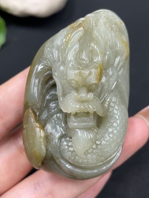 H28311004 Hetian Jade Handheld Ornament - Dragon, Total Weight (including rope): 157.2g, Undetermined Skin Color Origin, Contains Other Mineral Components