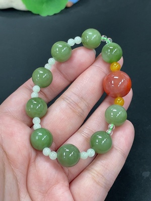 H37351020 Hetian Jade Bracelet, approx. 9.8mm, total weight about 30.5g, with non-Hetian Jade beads, non-gold
