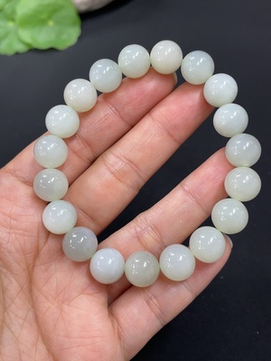 H38481315 Hetian Jade Bracelet, Approx. 10mm Beads, Total Weight About 27.5g