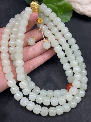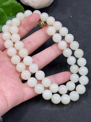 H37389826 Hetian Jade Bead Necklace, 58% Gold Content, Approx. 9.5mm, Total Weight Approx. 74.3g