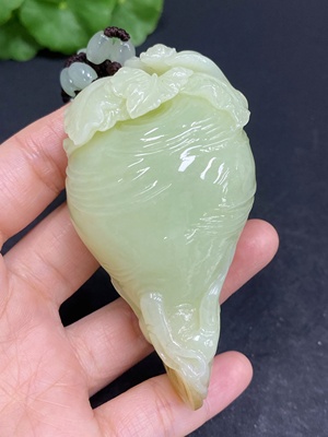 H30546420 Hetian Jade Hand Plaque Lotus and Fish Symbolizing Annual Abundance