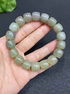 H35130679 Hetian Jade Bead Bracelet, Approx. 11.7mm, Total Weight About 47.5g, Non-Hetian Jade Beads Included