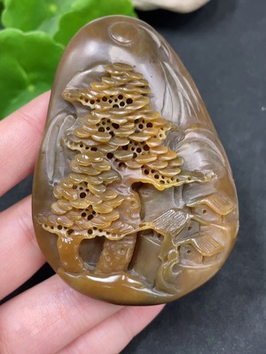 H36295868 Hetian Jade Handheld Carving Landscape Total Weight Approx. 103.5g