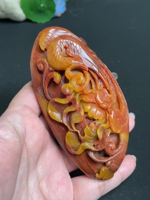 H36313424 Huanglong Jade Hand Piece - Phoenix and Peony Design, Total Weight Approx. 291.9g