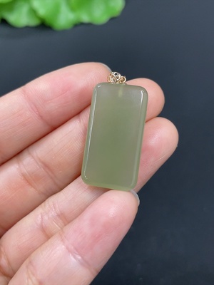 H38489437 Hetian Jade Pendant, Plain Pendant with 18k Gold Clasp, Total Weight Approx. 3.9g