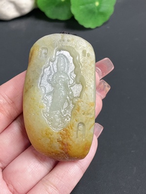 H25933602 Hetian Jade Pendant Guanyin Undetermined Skin Color Formation Total Weight Approx. [with chain] 72.4g