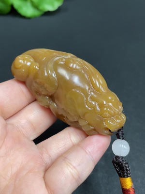 H30538015 Hetian Jade Handheld Carving - Pixiu - Undetermined Skin Color Origin - Total Weight (Including String): 100.9g