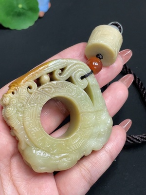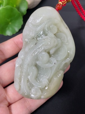 H37390549 Hetian Jade Handheld Carving Auspicious Beast Undetermined Skin Color Origin Total Weight Approx. (Including Rope) 138.5g