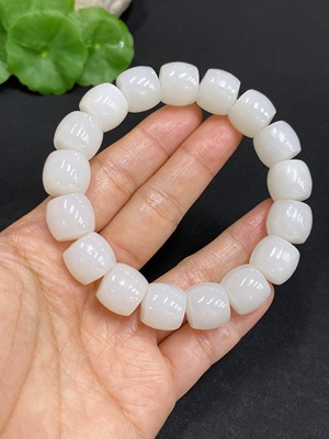 H25894101 Hetian Jade Bracelet Approx. 11.9mm Beads Total Weight Approx. 46.5g