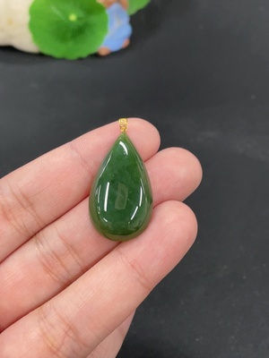 H38506496 Hetian Jade Inlaid Pendant, Water Drop, Total Weight Approx. 4.4g, Gold Content 74%
