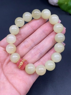 H30504350 Hetian Jade Bracelet Approx. 9.8mm Beads Total Weight About 33.2g