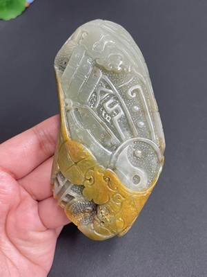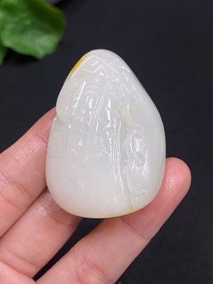 H38505800 Hetian Jade, undetermined skin color origin, containing other mineral components, total weight approx. 17.6g